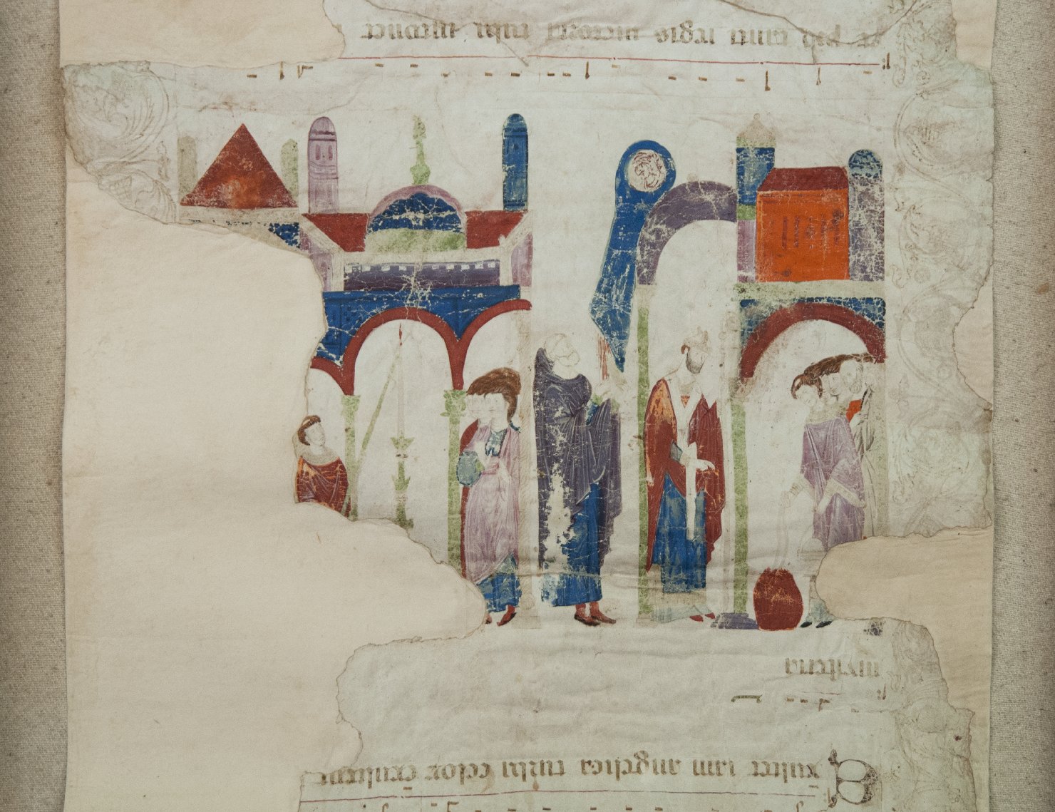 - NOTIZIE STORICO CRITICHE canto della Resurrezione e nel contempo acceso il cero pasquale. Le raffigurazioni che illustravano il testo erano dipinte in senso contrario rispetto al cantore, che doveva leggere e intonare i canti in modo che potevano essere ben visibili dai fedeli. Generalmente queste proponevano scene dell'Antico e del Nuovo Testamento e i momenti più importanti legati strettamente alla liturgia di Pasqua. Il rotolo qui esaminato dovrebbe essere stato e seguito in ambito pisano intorno alla metà del XIII secolo in quel momento di rinnovo della suppellettile ecclesiastica che interessò il Battistero alla metà del secolo a partire dal fonte battesimale di Guido di Como fino al pulpito di Nicola Pisano. Sicuramente i miniatori locali furono influenzati dalla tradizione della produzione meridionale che era presente nel territorio pisano e lucchese con l'Ordine monastico degli Eremiti Pulsa nesi provenienti da Santa Maria di Pulsano, diocesi di Manfredonia, e che si erano trasferiti in Toscana a partire dalla seconda metà del secolo precedente. Gli studiosi si sono dibattuti a lungo sull'origine meridionale del rotolo o di una sua elaborazione in ambito pisano da parte di un artista in contatto con l'opera del Maestro di San Martino o all'attribuzione, almeno parziale, al Maestro stesso. Il Bertaux (1904) lo ritiene di un m iniatore toscano attivo agli inizi del '300; la Avery (1936) propende invece per l'Italia meridionale; il Muzzioli nel catalogo della Mostra della Miniatura del 1953 lo assegna genericamente all'Italia centrale e al XIII secolo; il Carli (1957, 1974) lo attribuisce a scuola pisana distinguendo due diverse mani nella esecuzione delle miniature attribuendone cinque al Maestro di San Martino; Il Degehnart e la Schmitt (1968) lo riconfermano ad un maestro pisano vicino al Maestro di San Martino datandolo all'ultimo decennio del secolo; la Dalli Regoli (1972, 1986) lo riconduce ad un miniatore diverso dal Maestro di San Martino che ripete a tratti le tipologie caratteristiche degli Exultet meridionali; la Calderoni Masetti (1984 , 1994) infine, lo ascrive ad ambito pisano ed eseguito intorno al 1240-1260 per la committenza di arcivescovi di grande rilievo quali Federico Visconti (1254-1277) o il suo predecessore Vitale (1218-1253). La studiosa, pur riscontrando legami con l'arte meridionale, individua nelle "slanciate figure avvolte in ampi mantelli dal panneggio fitto e pluridirezionale, per le masse cromatiche incise da strigliature luminose, per i bianchi volti appena caratterizzati nei lineamenti da sottili linee di inchiostro e da lievi ombreggiature all'acquerello" (1984, p. 216) anche un influenza europea derivante sia dall'arte dei maestri vetrai francesi e tedeschi attivi ad Assisi nelle vetrate della Basilica Superiore, sia dall'arte orafa dei maestri limosini le cui opere sono documentate nel territorio pisano fino dall'ultimo venticinquennio del XIII secolo. Lo stesso motivo a racemi e volute che incornici a tutto il rotolo deriva chiaramente dalla tradizione orafa. La studiosa riconosce comunque la presenza di due mani nella stesura del ciclo figurativo, ciclo che veniva illustrato prima della parte grafica e vede nello scriba l'autore del fregio che delimita il testo su tutti i lati. Il programma iconografico dell'Exultet è particolarmente selettivo e privilegia le i mmagini cristologiche e quelle relative alle funzioni del Sabato Santo, non concedendo spazio a temi naturalistici presenti invece in quasi tutti i rotoli conosciuti. Il rotolo è composto da otto parti incollate fra loro. La prima sezione fu sostituita, probabilm ente nell'ultimo ventennio del XIX secolo, con una copia su pergamena moderna. L'originale fu però fortunatamente conservato e rincollato al suo posto durante il restauro della fine degli anni Ottanta