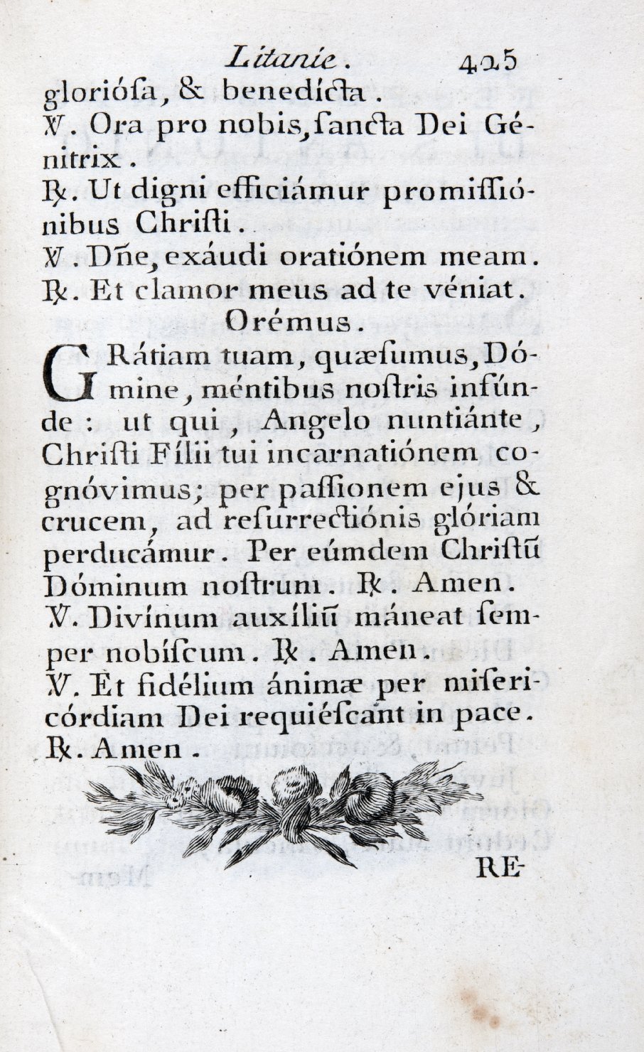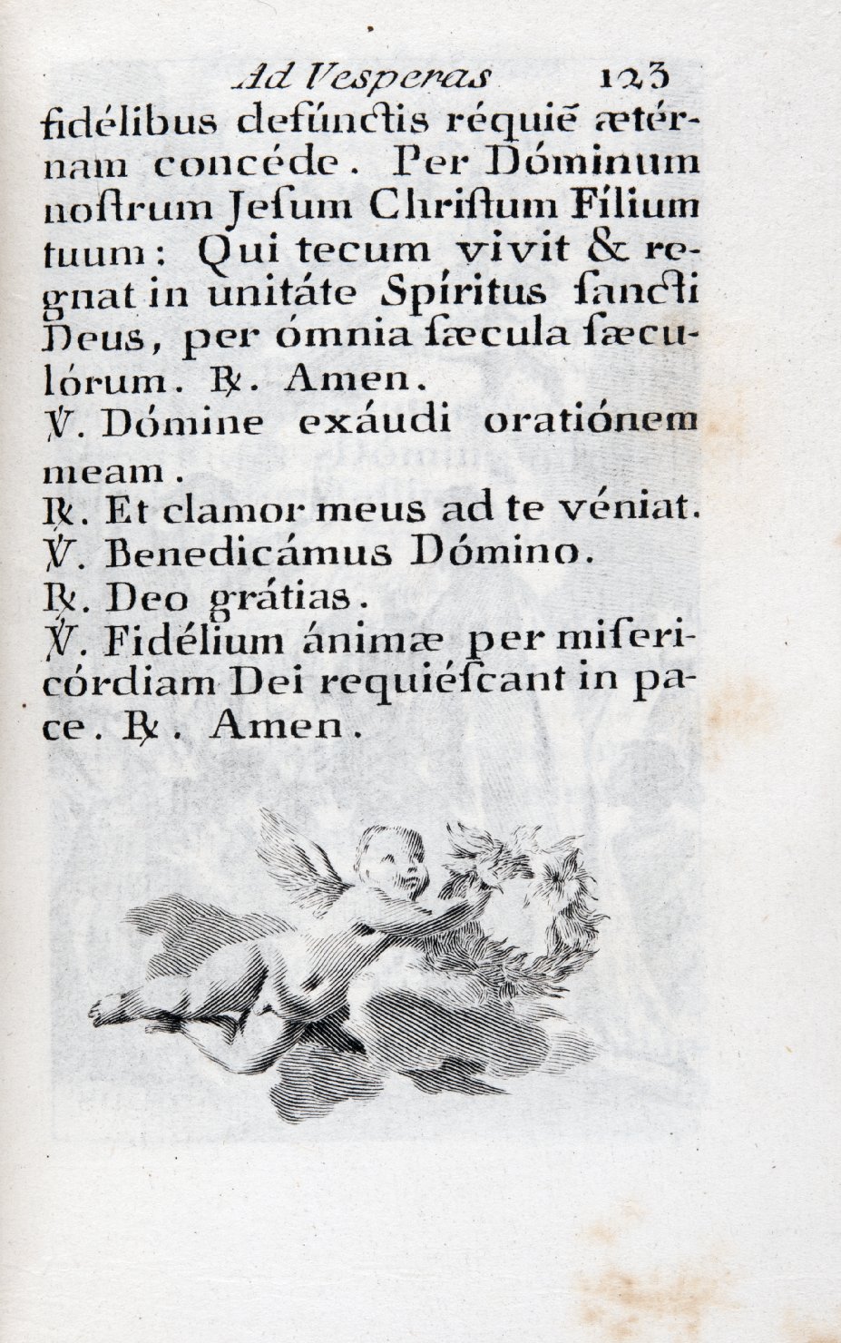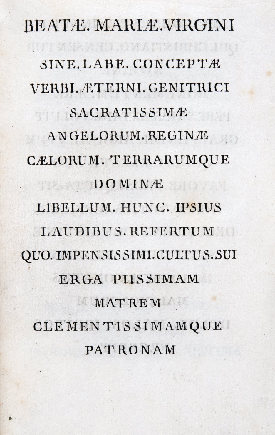 - ISCRIZIONI frontespizio - BEATAE MARIAE/ VIRGINIS/ OFFICIUM/ VENETIIS/ Apud JO. BAPTISTAN PASQUALI/ MDCCXL/ Superiorum permissu, ac Privilegio/ Excellentiss. Senatus - lettere capitali/ corsivo - a matita - latino
