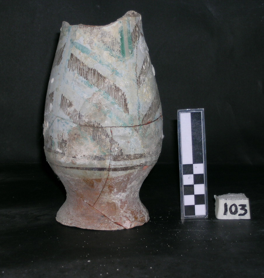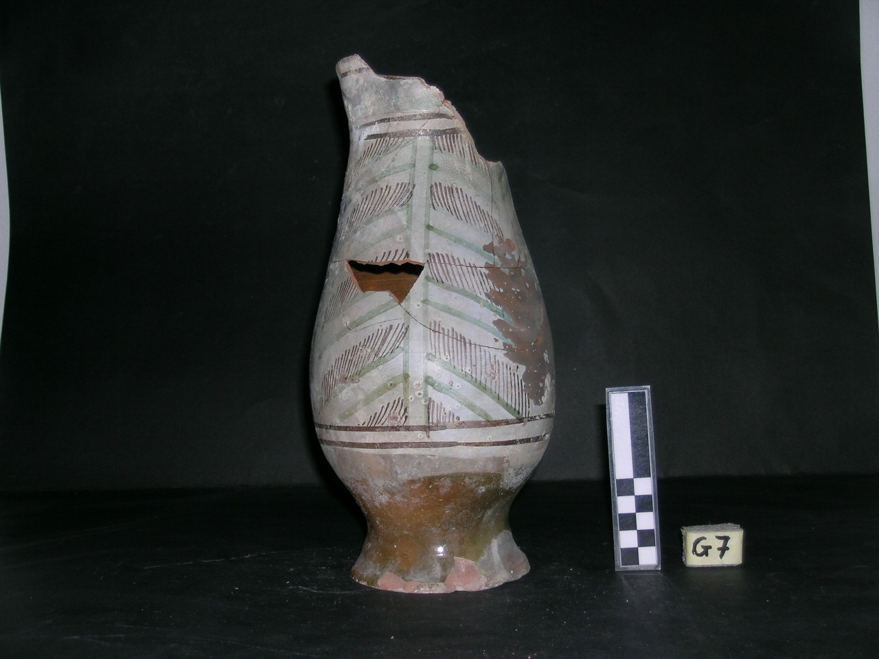 vaso - maiolica arcaica, serie - produzione pisana (meta' sec. XIII)
