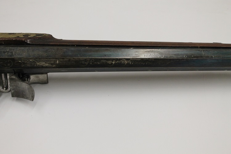 Arma da fuoco portatile. Canna brunita a due ordini, tonda e quadra filettata alla giuntura, con anima traversata internamente da cinque righe con 9 mm di distanza tra due pieni