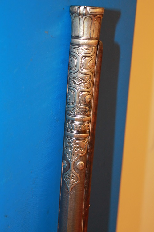 Arma da fuoco portatile. Canna a vari ordini con cornici agli stacchi. Dalla culatta: traguardo a un foro in blocchetto ogivale nella parete di culatta; breve tratto sezione mista; ordine quadro a dodici facce decorato ad agemina; lunga sezione tonda; breve sezione tonda; bocca conica strombonata scolpita a nicchie e decorata ad agemina, con tacca di mira a due punte