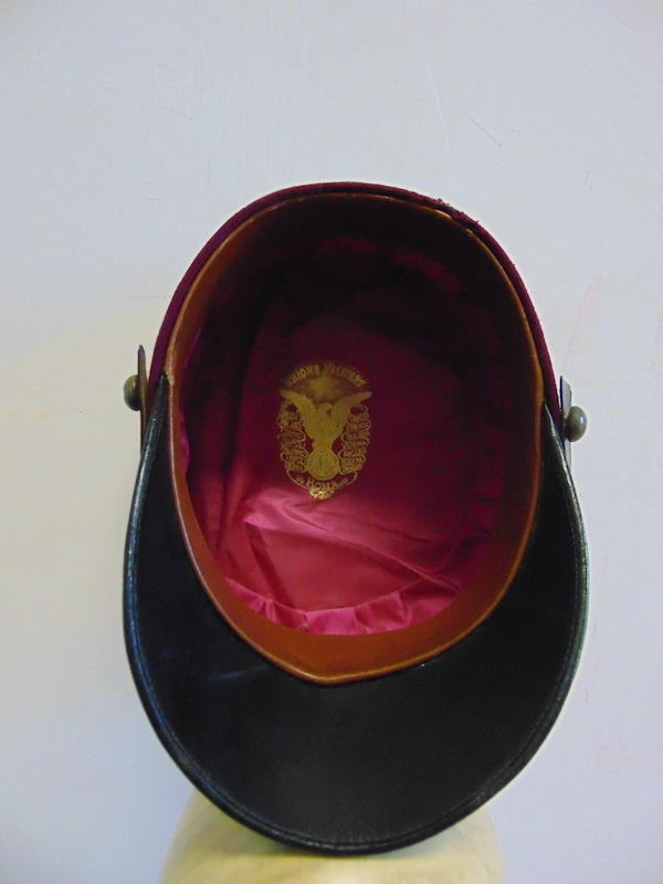 Visiera aggettante e sottogola a cinturino regolabile e fissato alle tempie con due bottoni e posizionato sopra la visiera. Fregio con stemma della Croce Rossa Italiana su stella e sormontato da corona, sovrapposto a striscia di colore grigio. Parte superiore larga ed alta, rigida e sagomata "a panettone" di colore grigio-verde. Interno foderato di colore rosa con stemma dell'Unione Militare