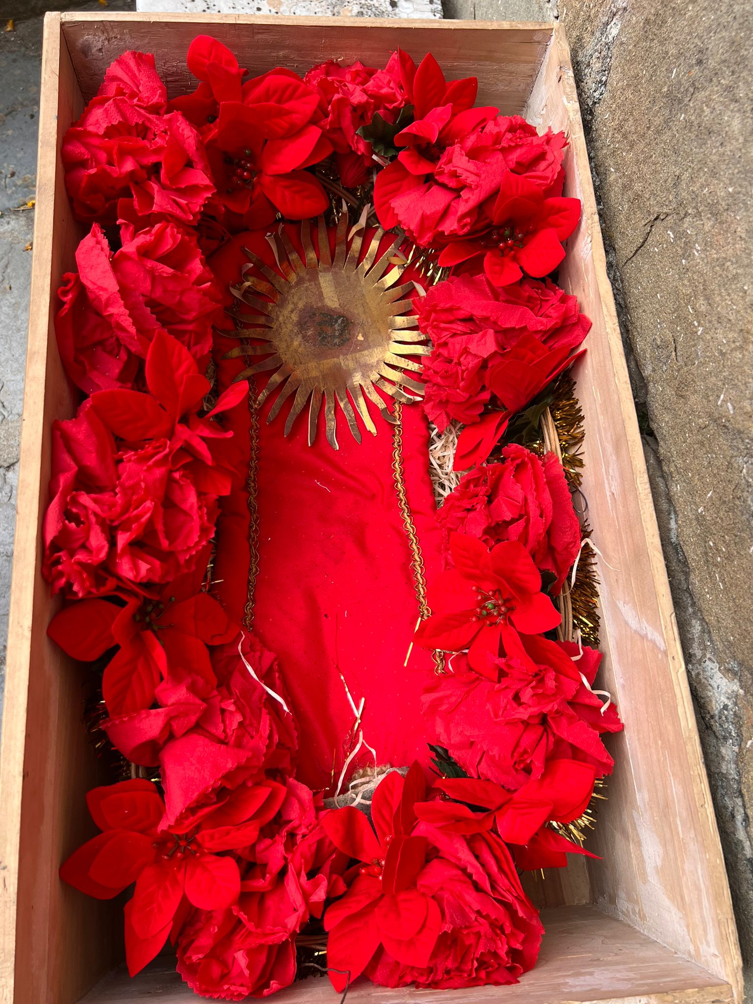 - NOTIZIE STORICO CRITICHE La scultura fu commissionata, con molta probabilità per la festività del Natale. La particolarità interessante è la presenza dell’intero corredo: la scatola per riporla, l’arredo con fiori e ritagli di carta, il piccolo cuscino