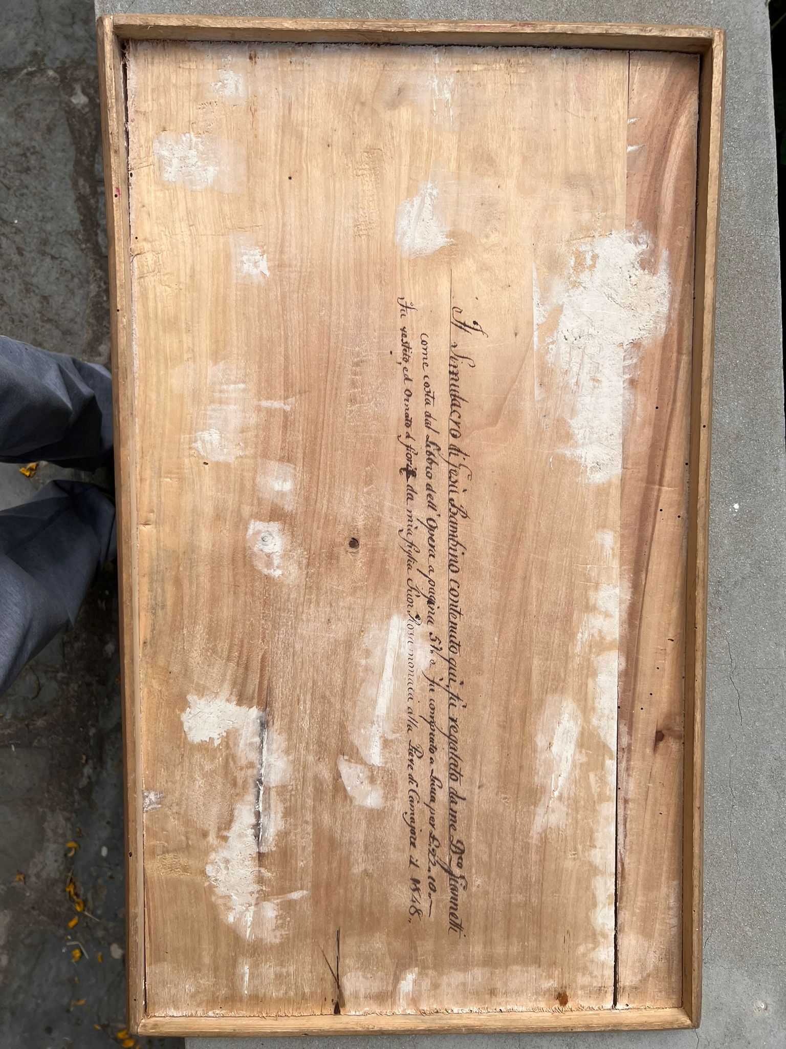 - ISCRIZIONI lato esterno del coperchio della scatola in cui è contenuta la statuetta - POSA PIANO / PUGLIANO OP(ER)A / 1848 - Domenico Giannetti - capitale - a penna - italiano