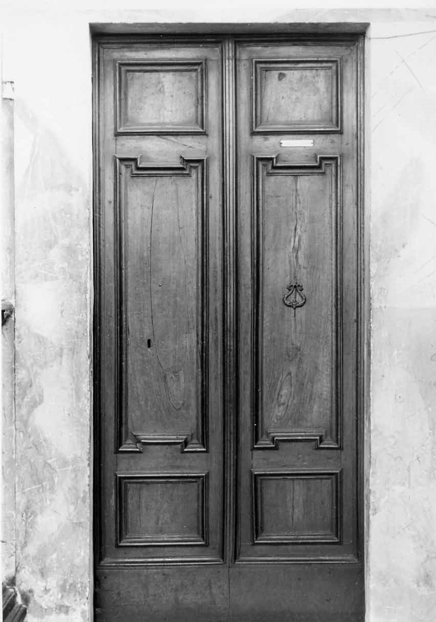 Le due ante della porta sono caratterizzate da tre specchi ciascuna, di cu i quello centrale, verticalmente allungato, è costituito da listelli a pro filo mistilineo. I tre specchi sono inseriti entro una cornice modanata. L a porta che immette all'oratorio è fornita di uan sola maniglia lavorata, quelal che conduce alla sacrestia piccola, ha due maniglie ricurve