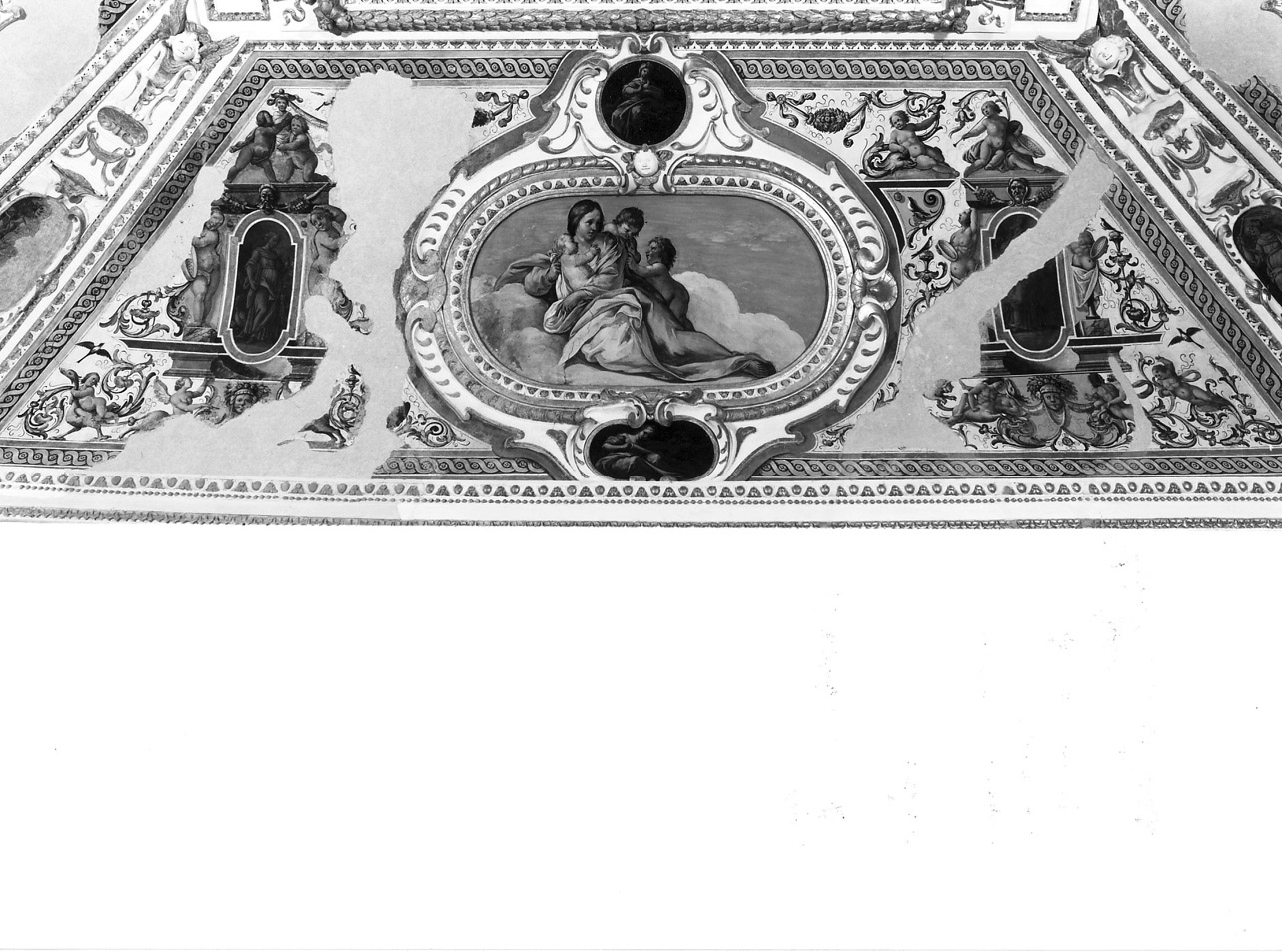 La volta ha una fitta decorazione a grottesche interrotta al centro da un rettangolo ornato da una cornice simulata in pittura raffigurante l'Allegoria della famiglia Rondinini,cioè una giovane donna seduta sulle nubi che regge un setaccio e guarda tre rondini e un angioletto che tiene anch'egli un setaccio (è la versione più elaborata dello stemma del vescovo committente). Ai lati,all'interno di scomparti trapezoidali con elaborate cornici,simulate in pittura,raffigurazioni di virtù,come la "Carità",una giovane donna avvolta in un mantello che,semidistesa su una nube, tiene tra le braccia un bambino mentre altre due le si stringono contro