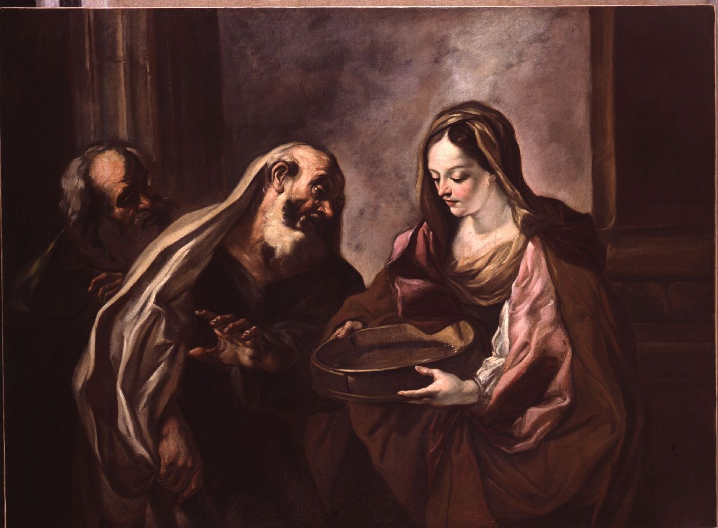 - NOTIZIE STORICO CRITICHE Il dipinto entrò in Pinacoteca municipale nel 1894 col Legato condizionato di Luigi Carattoli (delibera 402, 13 aprile 1894). Se ne ignora la provenienza originaria ma risulta nelle mani del Carattoli già dal 1867 poiché questi lo aveva proposto come merce di scambio al restauratore Geremia Fata di Gubbio in cambio di una Madonna baroccesca. Il soggetto va identificato con la vicenda della vestale Tuccia (raccontata da Tito Livio, Valerio Massimo e Dionigi di Alicarnasso): accusata di avere infranto il voto di castità, provò la sua innocenza riempendo un setaccio d'acqua del Tevere e portandolo, con l'aiuto della dea Vesta, senza perdere una sola goccia; Petrarca legge la vicenda della vestale come simbolo della Pudicizia; Cesare Ripa, della Castità. Un dipinto molto vicino a questo e attribuito a Beinaschi, è passato per il Mercato antiquario (Vicenza) prima del 1995. G.B. Beinaschi, pittore piemontese nato nel 1636, fu a Roma alla metà del secolo; è stato annoverato tra i più fedeli seguaci del Lanfranco per quanto il contatto non possa essere stato diretto poiché il caposcuola morì nel 1647