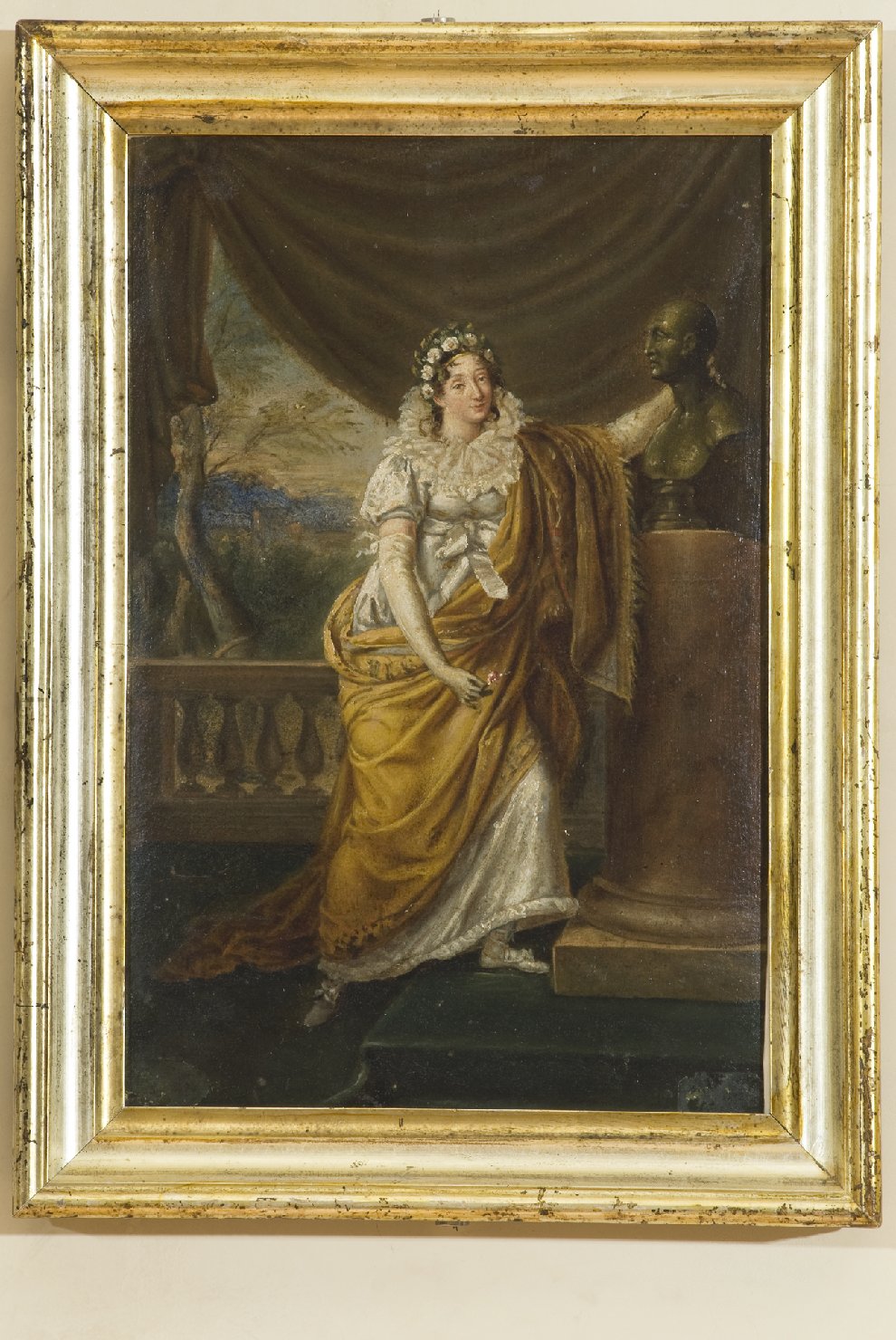 - NOTIZIE STORICO CRITICHE Acquisito col legato Carattoli nel 1894, il dipinto raffigura Karolina Stanisława Kazimiera Małachowska (1795-1822), figlia del conte Stanisław Aleksandr Małachowski (1770-1849) - un aristocratico polacco, generale dell'esercito del Ducato di Varsavia. Il riconoscimento del personaggio è stato reso possibile grazie al confronto con la pala di identico soggetto della Galleria d'Arte del Museo-Riserva Statale di Smolensk, attraverso la comunicazione di Tatiana Pavolova, ricercatrice capo della Galleria d'Arte del Museo-Riserva Statale di Smolensk a Carla Scagliosi, curatrice, con Giovanni Manuali, della mostra "Andate e ritorni. Dalla GNU all'Accademia di Belle Arti" (Perugia, 2021) dove il bozzetto è stato esposto. Il dipinto russo è firmato "EQ[U]ES GIO[VANNI] B[A]TT[IST]A WICAR P[INXIT] ROMAE. 1820 e permette quindi di collocare cronologicamente la tela della Galleria NAzionale dell'Umbria. Karolina Stanisława Kazimiera Małachowska nel 1817 sposò Ludwik Michał Pac (1778/80?-1835), un principe polacco cresciuto in Francia, rappresentante di una delle più influenti famiglie di magnati del Granducato di Lituania; egli partecipò alla campagna di Napoleone in Russia nel 1812, fu senatore e un grande amante dell'arte. La coppia trascorse la luna di miele in Italia, visitando Firenze, Pompei e Roma della quale il dipinto offre una veduta idealizzata. Poco dopo il matrimonio, Karolina si ammalò di tubercolosi e a brevi intervalli fu curata all'estero, soprattutto in Francia, a Montpellier, dove morì nel 1822