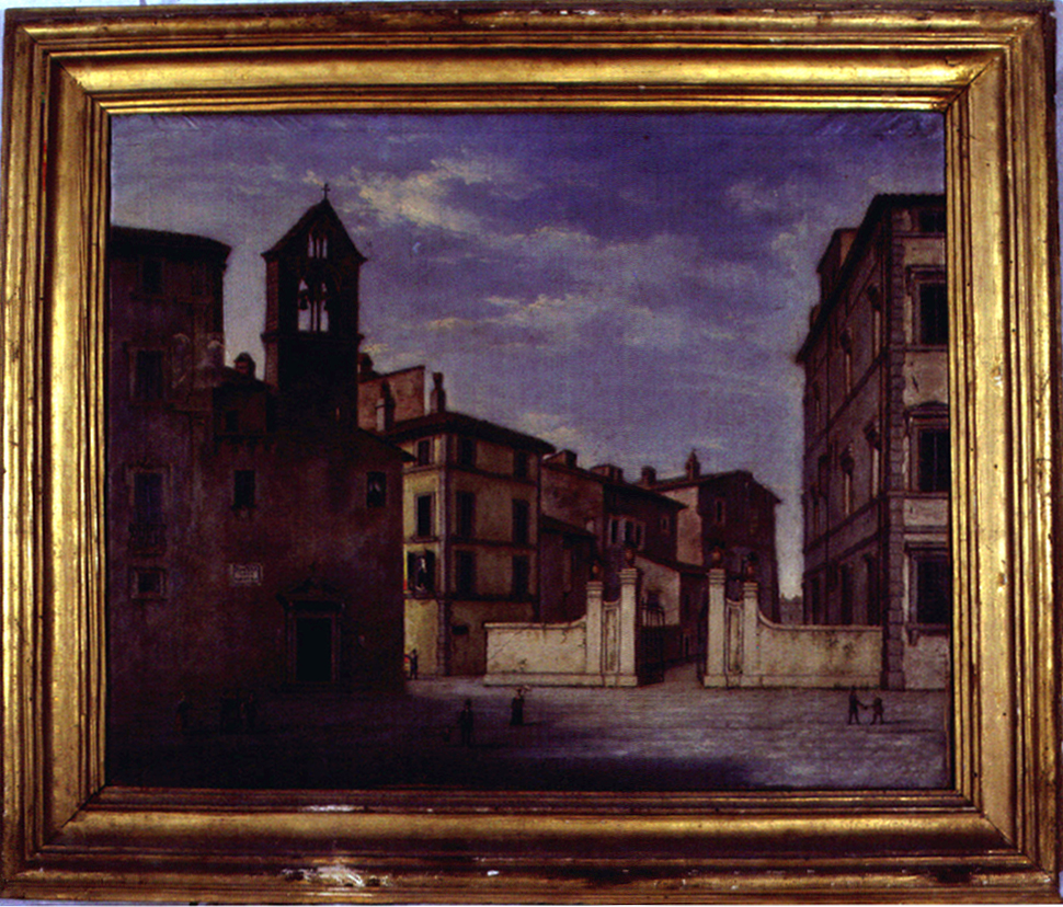 - NOTIZIE STORICO CRITICHE L'opera, donata dallo stesso Giuseppe Rossi, documenta edifici scomparsi e luoghi trasformati, della città di Perugia dopo il 1860. Pittore e scenografo perugino, Giuseppe Rossi si dedicò spesso alla paesaggistica, genere particolarmente richiesto in quegli anni anche per l'afflusso di viaggiatori stranieri