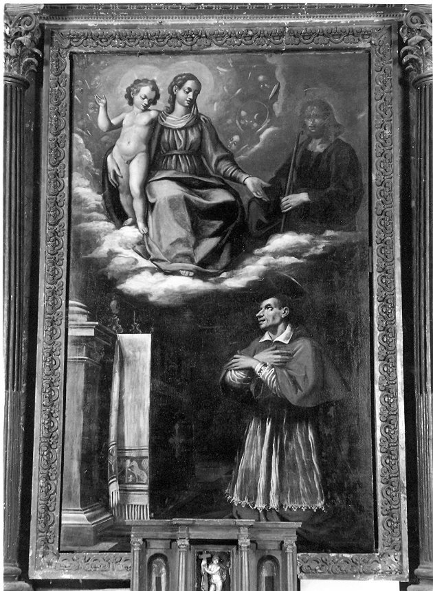 Personaggi: San Carlo Borromeo; Vergine; Bambino. Figure: figura maschile