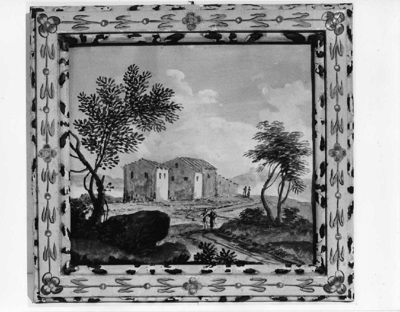 Paesaggi: Paesaggio con albero ed edifici e figure