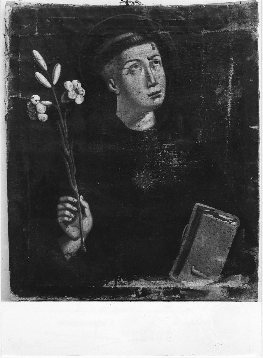Nel dipinto S. Nicola da Tolentino è rappresentato come un giovane dal viso glabro, con l'abito nero dei frati agostiniani, con il ramo di giglio fiorito in una mano, una stella in mezzo al petto e il libro delle Regole nell'altra mano