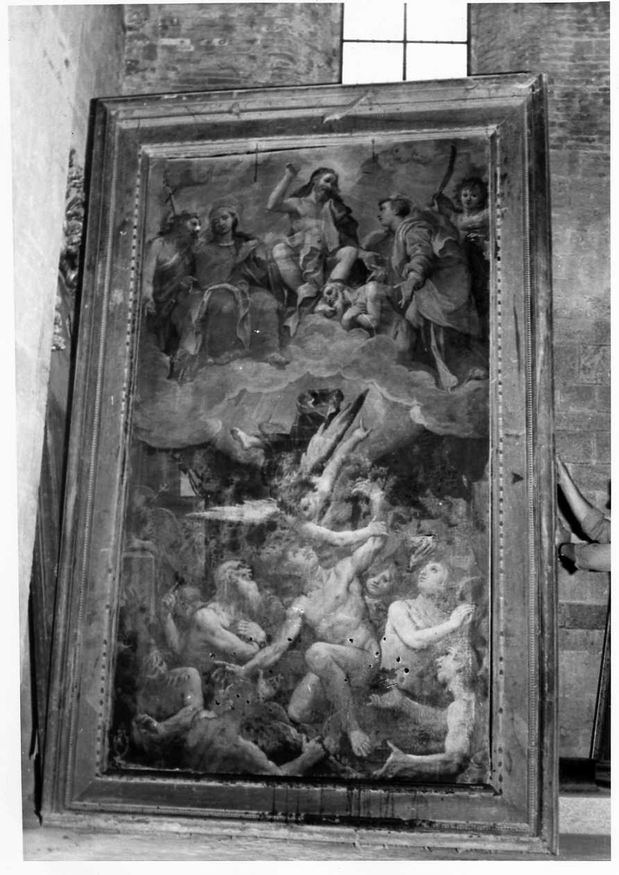 Cristo con Santi sopra una nuvola; sotto un gruppo di dannati