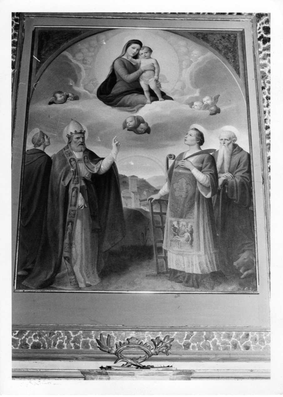 Madonna con Bambino tra nuvole e cherubini, sotto quattro figure di santi: San sisto, San Lorenzo e Sant'Antonio Abate