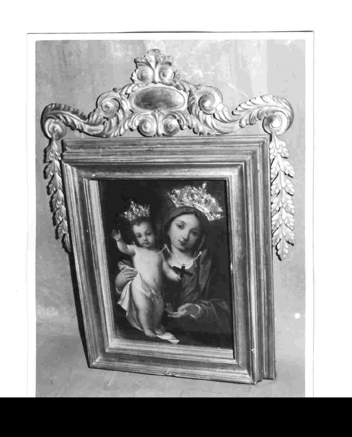 Personaggi: Madonna; Gesù Bambino. Attributi: ( Madonna) corona; crocifisso; collana di perle; ( Gesù Bambino) corona; collana di perle