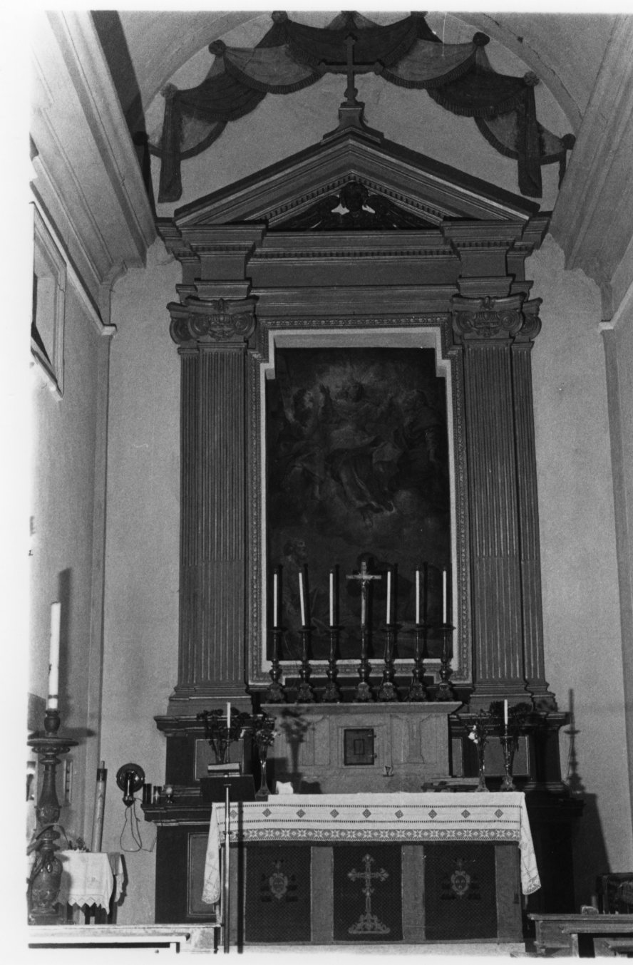 La macchina d'altare si struttura con una duplice serie di paraste dalle scalanature dorate terminanti con un capitello ioico. La trabeazione è percorsa da modanature e sorregge il frontone nel cui timpano è inserito un angelo alato. Una croce sormonta il frontone. Al centro dell'altare vi è una nicchia poligonale con pala d'altare ad affresco raffigurante la Trasfigurazione