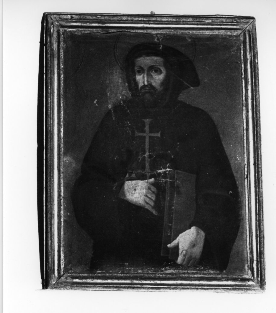Il dipinto ritrae un Santo con il cappuccio in testa e la barba. Sul saio è dipinta una Croce. Il Santo, che porta un grosso libro sotto il braccio sinistro, ha sul dorso delle mani i segni delle stimmati