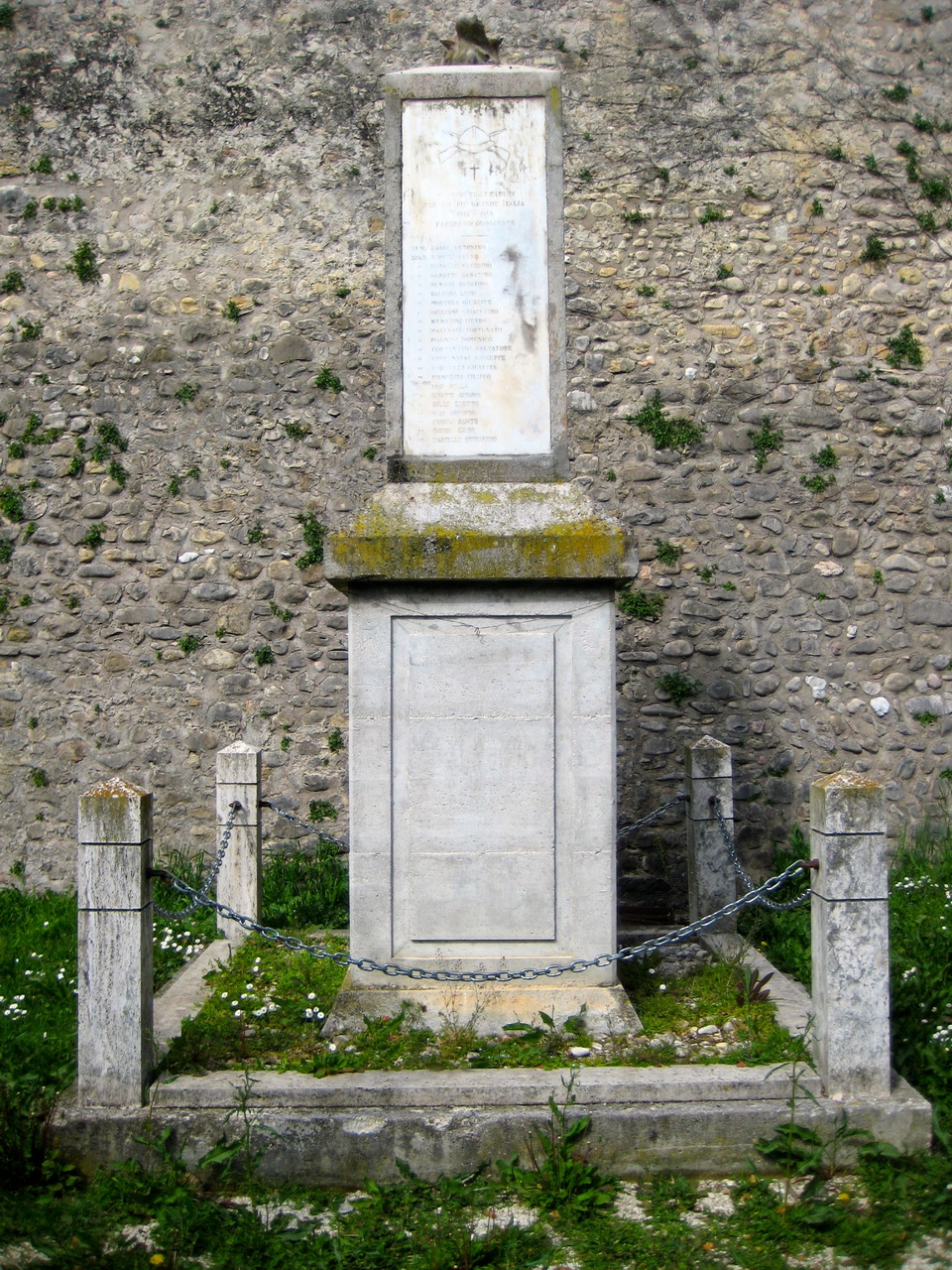 Il monumento è costituito da due parallelepipedi uniti da una piramide tronca con un basamento. E’ delimitato da una recinzione composta da quattro colonnine unite da una catena