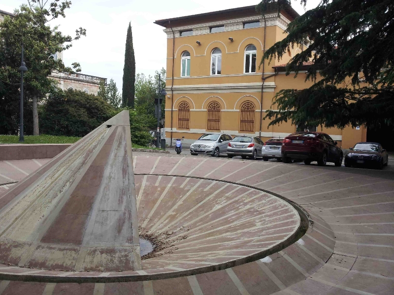 - NOTIZIE STORICO CRITICHE Ha una forma di meridiana e descrive il cammino quotidiano del sole, che sembra sorgere ogni alba sulla memoria, fino al tramonto, eludendo l’oblio, in attesa di un nuovo giorno. L’intero complesso architettonico si sviluppa come un arioso anfiteatro, a voler accogliere chi desidera sostare e ricordare, unificando, con un messaggio universale, tutte le genti