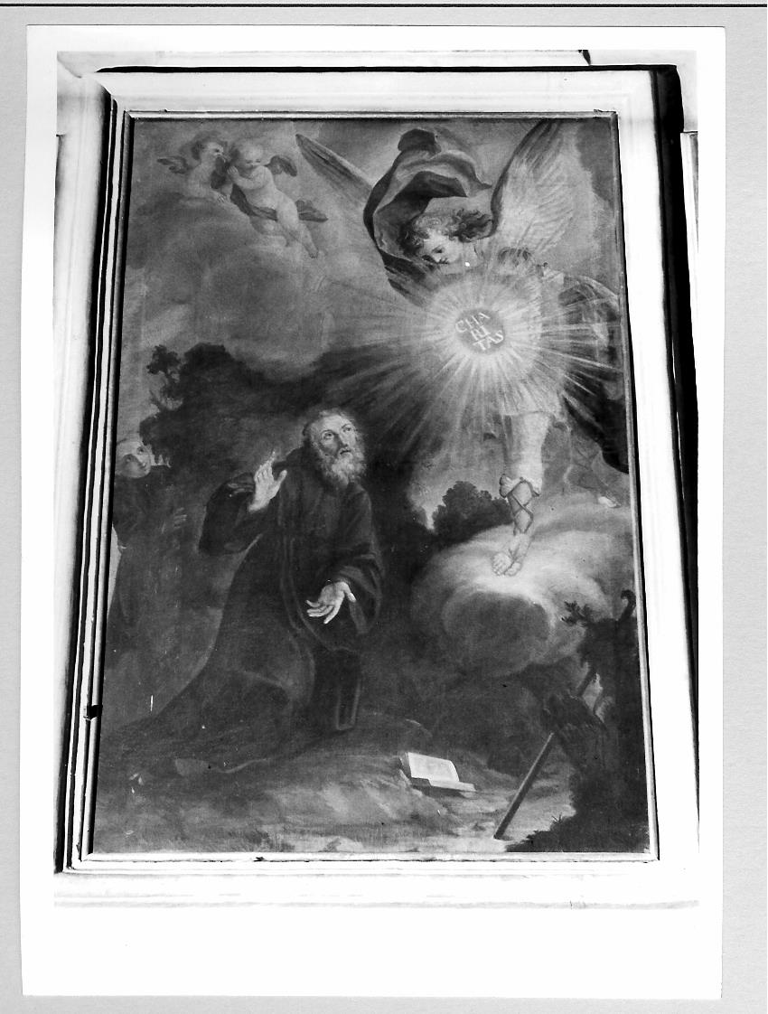 Personaggi: San Francesco di Paola. Figure: angelo. Attributi: (San Francesco di Paola) libro; cilicio
