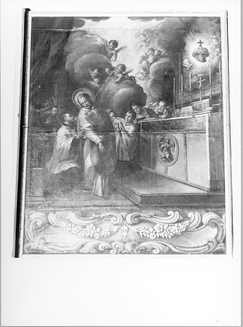 Personaggi: Sant'Andrea Avellino. Figure: chierici; sacerdoti; cherubini. Oggetti: altare
