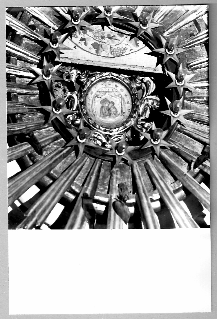 Personaggi: Madonna; Gesù Bambino. Elementi architettonici: tenda aperta