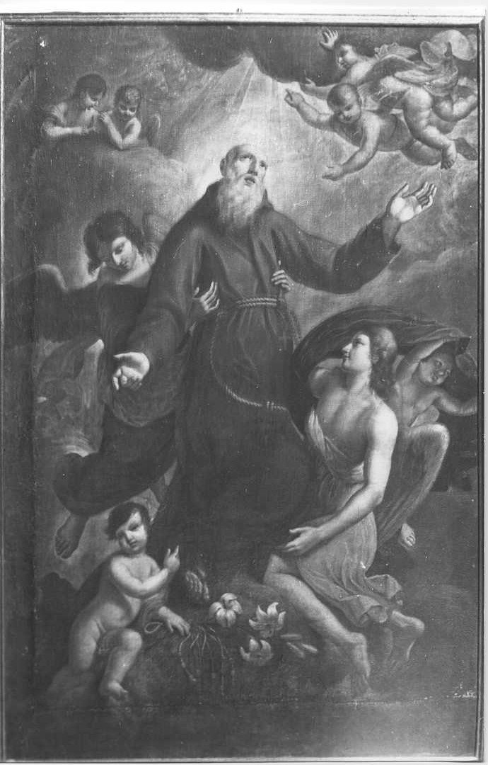 Soggetti sacri. Personaggi: santo cappuccino. Figure: angeli. Attributi: (santo cappuccino) gigli; ciliclio; barba