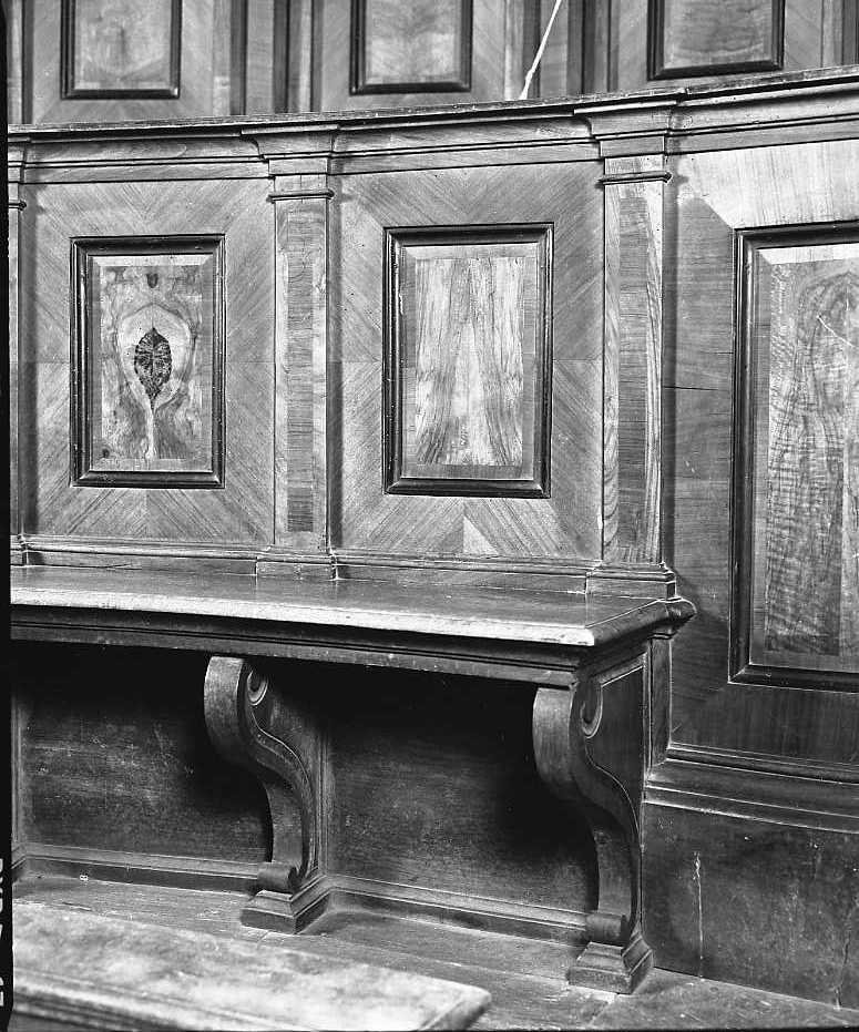 - NOTIZIE STORICO CRITICHE La grande tela appare scomposta in due piani; nel primo, corrispondente al mondo umano sono disposti in semicerchio i personaggi, testimoni dell'improvvisa apparizione e i loro sguardi sono volti verso l'alto. Le loro mani sono protrese, serrte e aperte per mostrare devozione, sorpresa, inquietudine difronte a quanto sta accadendo. Sopra le loro teste è realizzato il secondo semicerchio di vaporose nubi sulle quali si posano i due angioletti che sorreggono l'immagine, gli angeli hanno il passo cadenzato di chi giunge per mostrare la serenità di chi già possiede la verità. La disposizione degli angeli in diagonale fa balzare in primo piano l'immagine della Madonna con Bambino