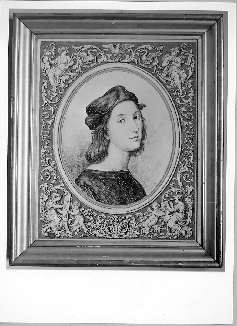 Personaggi: Raffaello Sanzio. Personificazioni: Architettura; Musica; Pittura; Scultura. Araldica