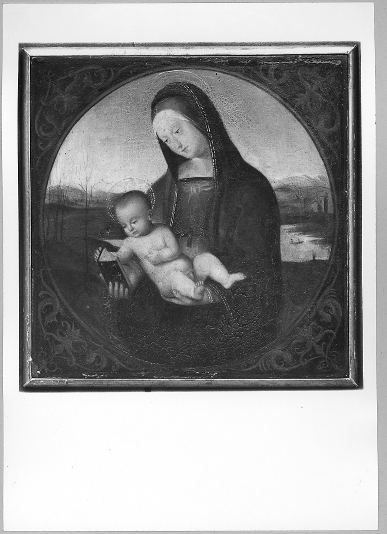 Personaggi: Madonna; Gesù Bambino. Paesaggi. Oggetti: libro