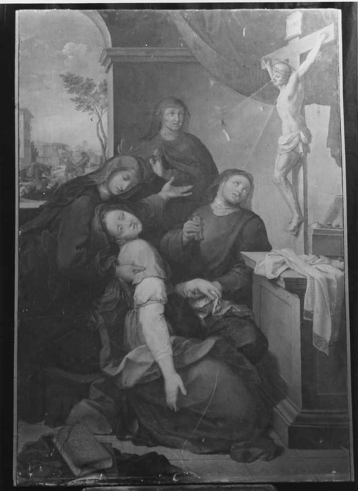 Soggetti sacri. Personaggi: beata Serafina Sforza. Interno. Architetture: chiostro. Figure: clarisse. Mobilia: altare; crocifisso; tendaggio. Elementi architettonici: arcata. Oggetti: libro