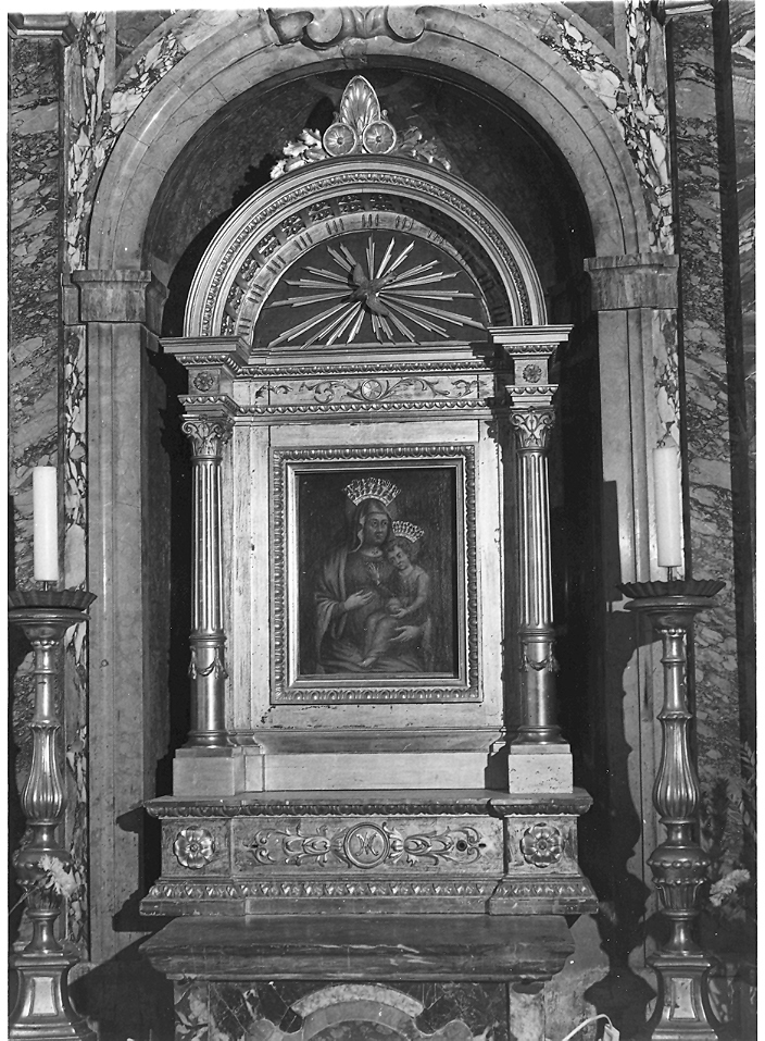 - NOTIZIE STORICO CRITICHE Il dipinto è copia ottocentesca di un affresco quattrocentesco situato all'esterno di una casa poi portato con tutto il muro nella chiesa, ora semidistrutto (Leonardi 1966, p. 37)