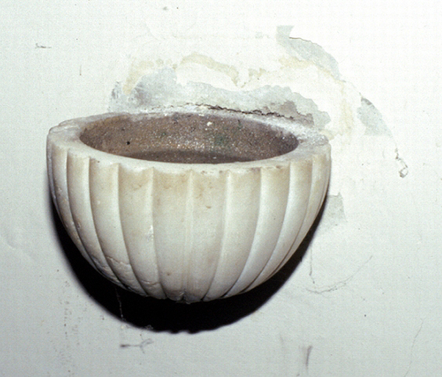Acquasantiera a parete a conchiglia con vistosa costolatura