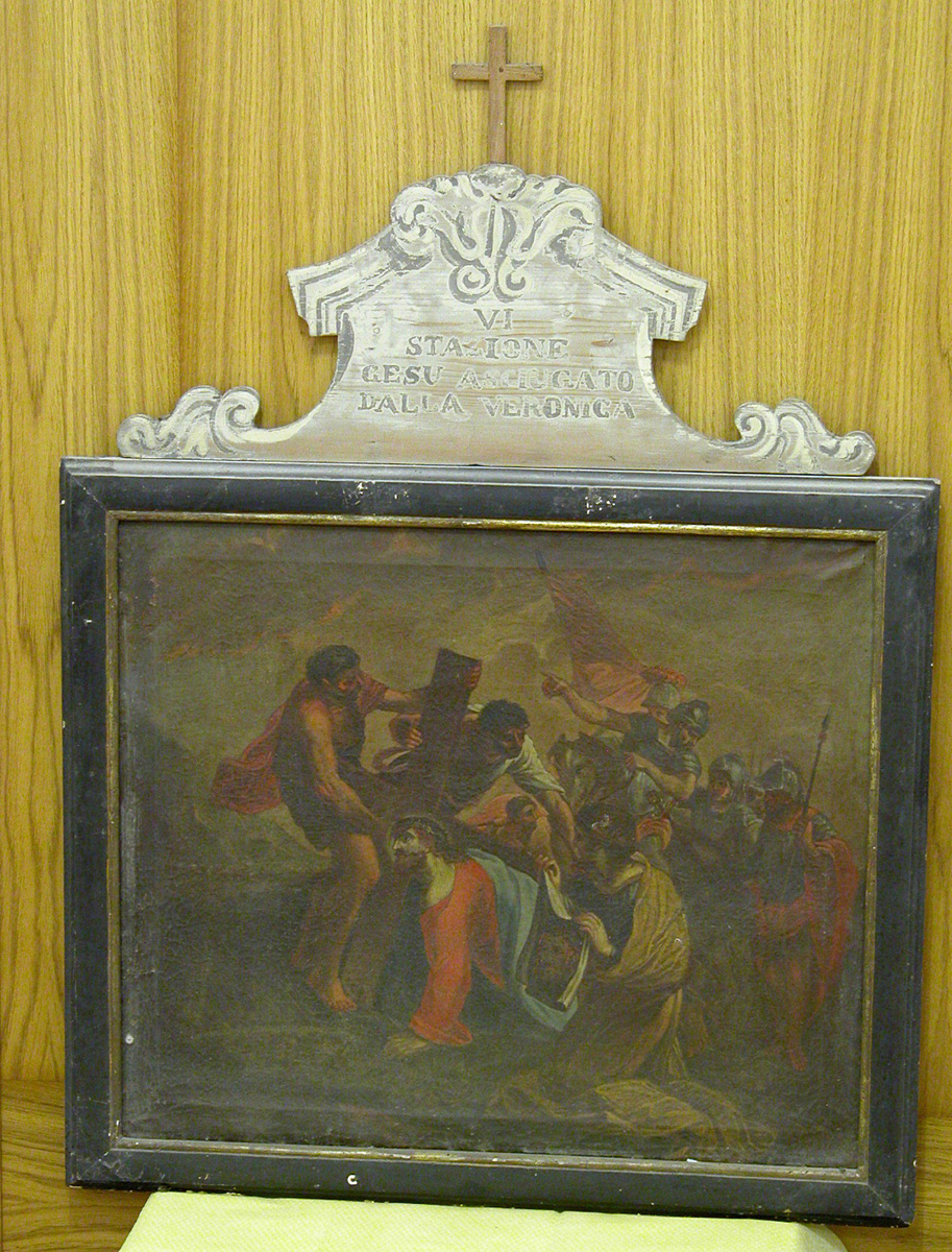 Soggetti sacri: Nuovo Testamento. Personaggi: Gesù. Figure: soldati; aguzzini. Oggetti: croce; bastoni: Armi: armature; lance. Paesaggi: campagna