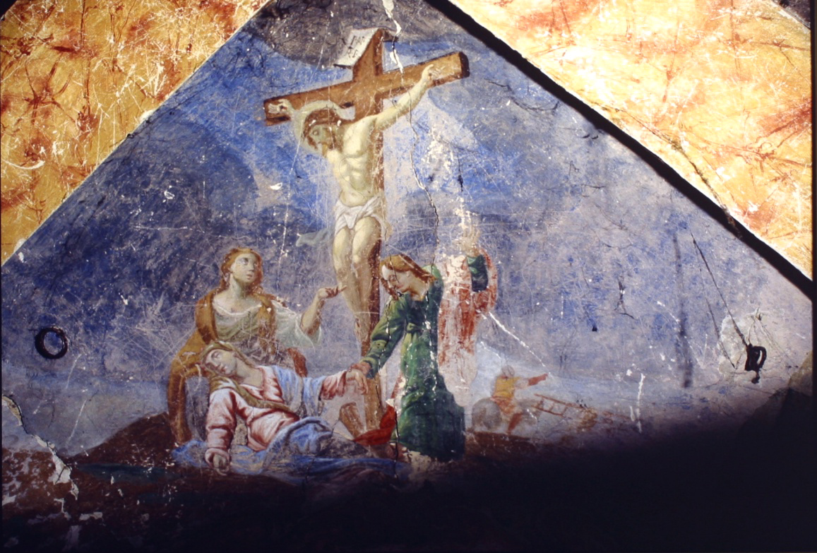 Soggetti sacri: Nuovo Testamento. Personaggi: Gesù Crocifisso; Madonna svenuta; San Giovanni Evangelista; Santa Maria Maddalena. Figure: soldati
