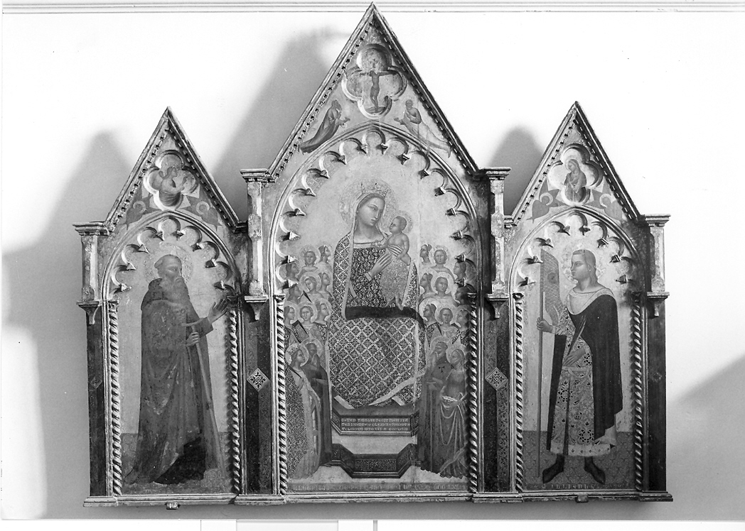 - NOTIZIE STORICO CRITICHE Fu eseguito per la chiesa di San'Antonio del Mercato e acquistato per il Duomo agli inizi dell'800 dal canonico Francesco Compagnoni (Paci, 1973, p. 10). In quest'opera, certamente una delle più importanti dell'artista, si può notare un accostamento alla pittura senese soprattutto nella ricca ornamentazione e nella diminuzione del rilievo