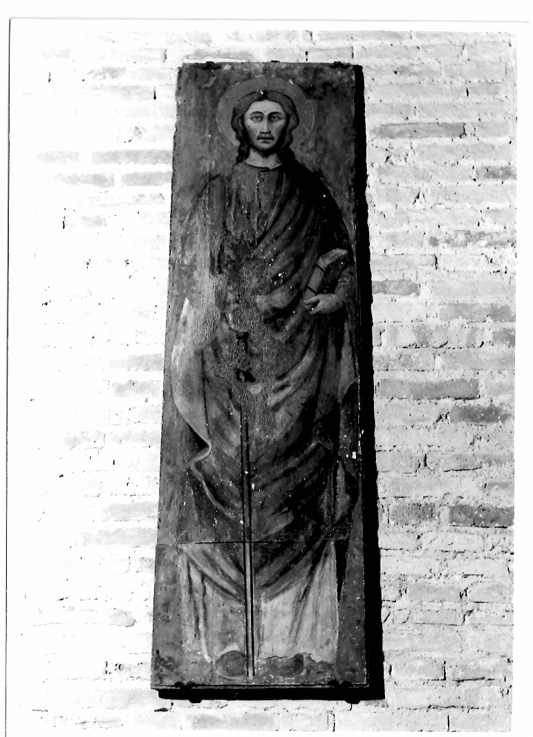 Personaggi: San Giacomo di Galizia. Abbigliamento: manto rosa drappeggiato. Oggetti: libro; bastone