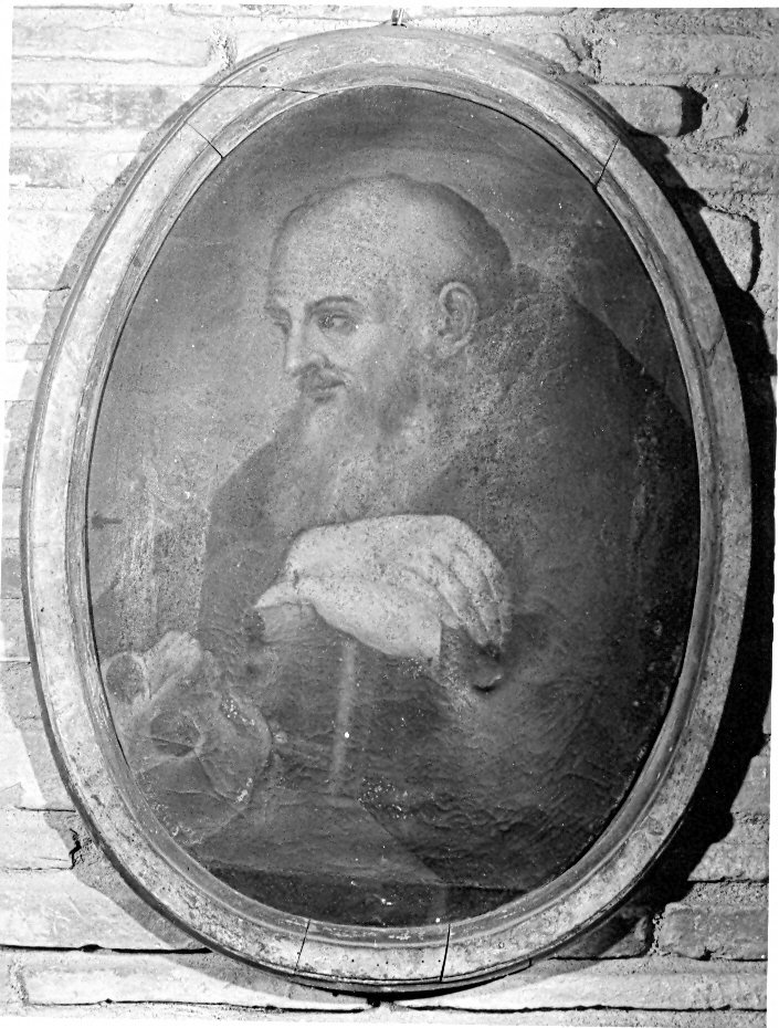 Il beato, ritratto in età avanzata, si appoggia con entrambe le mani ad un bastone. La figura, in atteggiamento pensoso, appare ritratta di tre quarti, rivolta verso sinistra davanti ad un teschio posato su un tavolo coperto da un panno