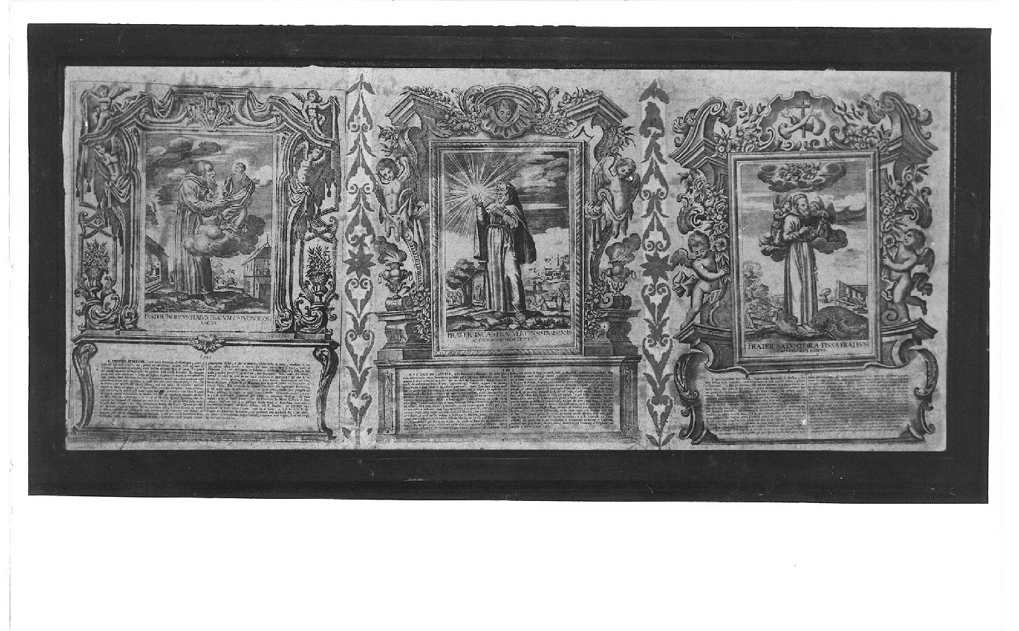 • NOTIZIE STORICO CRITICHE La stampa costituisce la prima dell'opera "Flores Seraphici...Capuccinorum" che consiste in una collezione di stampe raffiguranti i Cappuccini più illustri dal 1525 al 1612, denominata Flores Seraphici, opera del cappuccino Carlo d’Aremberg che si avvalse degli incisori fiamminghi Löffler, attivi a Colonia intorno alla metà del secolo XVII. Il maggiore, Johann Eckhard fu attivo dal 1630 al 1675; il minore Johann Heindrich
