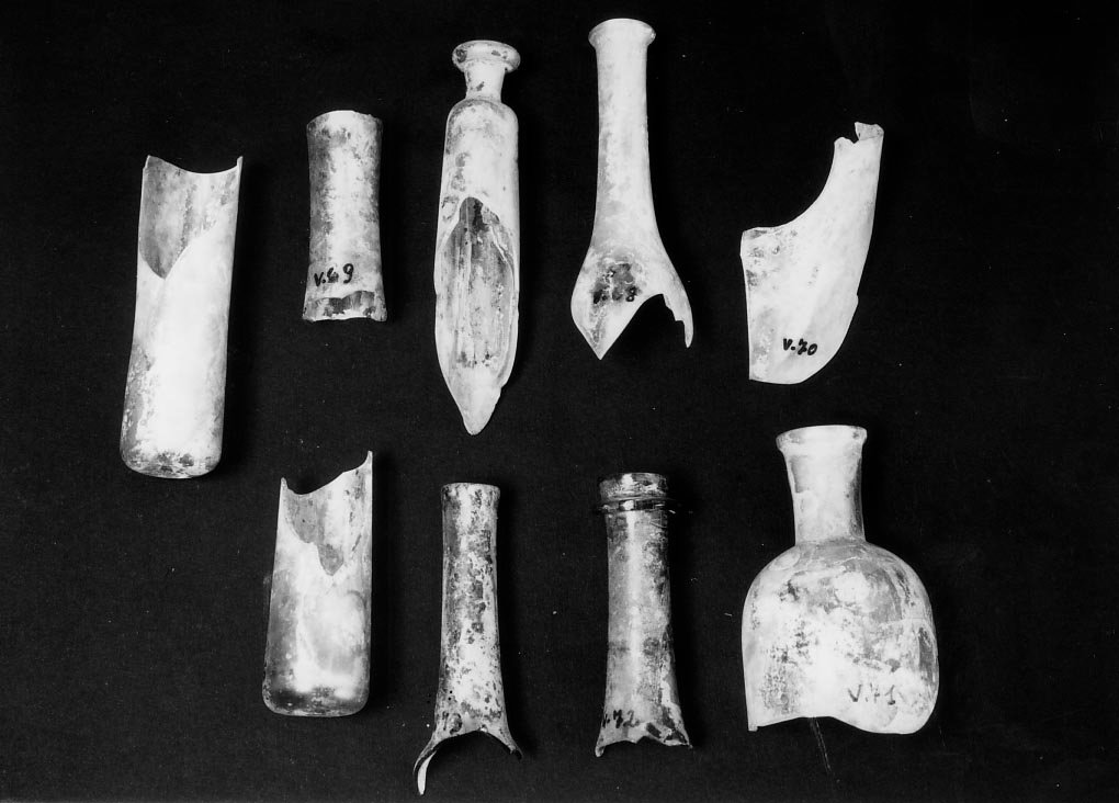 V. 68. Parti di bottigliette-filiale di corpo cilindrico: 68: parte superi ore