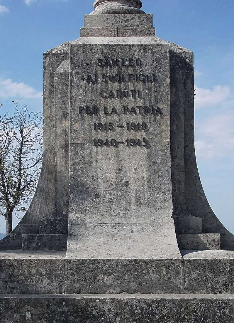 - ISCRIZIONI sul basamento - SAN LEO/ AI SUOI FIGLI/ CADUTI/ PER LA PATRIA/ 1915 - 1918/ 1940 - 1945 - capitale -
