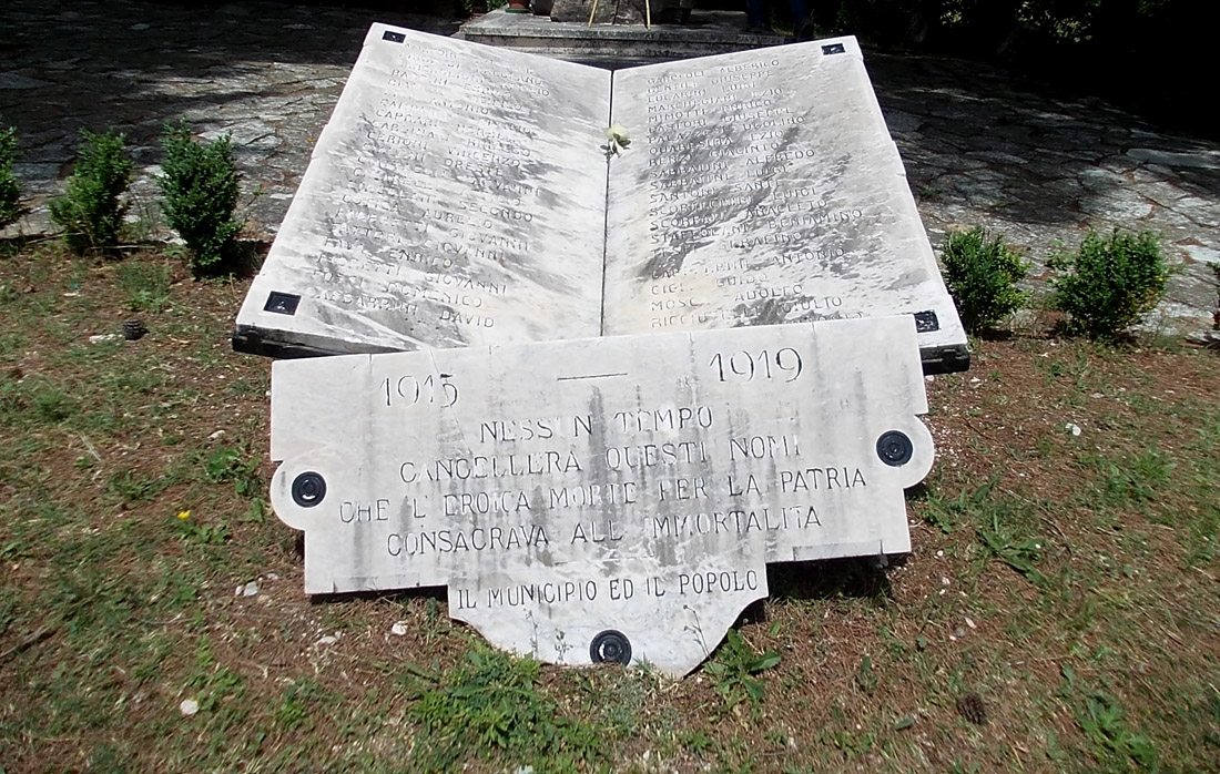 - ISCRIZIONI sulla lapide infissa nel terreno - 1915 - 1919/ NESSUN TEMPO/ CANCELLERA' QUESTI NOMI/ CHE L'EROICA MORTE PER LA PATRIA/ CONSACRAVA ALL'IMMORTALITA'/ IL MUNICIPIO ED IL POPOLO - capitale -