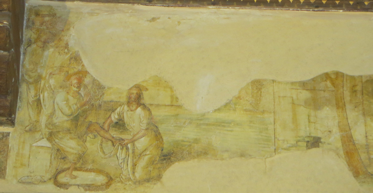 - NOTIZIE STORICO CRITICHE Il ciclo di pitture murali raffigurante Storie della Passione di Cristo rappresenta una delle opere più antiche e note che ancora oggi si conservano nella Rocca di Gradara. Il ciclo si dispiega in un fregio che corre, senza soluzione di continuità, lungo il perimetro superiore delle pareti nella Sala della Passione, ambiente che prende il nome proprio dal soggetto ivi raffigurato. Dalla parete adiacente al Loggiato, in senso orario, si riconoscono i seguenti episodi: Lavanda dei piedi, Cattura di Cristo, Pietro taglia l’orecchio al servo del Sommo Sacerdote, Cristo davanti Pilato, Flagellazione, Salita al Calvario, Crocifissione, Compianto-Cristo in Pietà, Deposizione di Cristo nel Sepolcro, Resurrezione, Discesa al Limbo. La critica specialistica ha universalmente riconosciuto il pittore bolognese Amico Aspertini (1474-1552) quale autore dell’intero ciclo eseguito con ogni probabilità nel corso dell’ultimo decennio del XV secolo. Permangono dubbi sull’intervento di eventuali collaboratori dell’artista. L’attività dell’Aspertini ricade cronologicamente in uno dei momenti cruciali nella storia dinastica della Rocca, sotto la signoria di Giovanni Sforza, signore di Pesaro dal 1483 al 1512, che nel 1493 sposò Lucrezia Borgia figlia di papa Alessandro VI, Rodrigo Borgia. Numerosi documenti attestano come proprio in quegli anni, 1493-1494, la Rocca fu interessata da una serie di interventi di restauro eseguiti in vista dell’arrivo della giovane Signora (Valazzi, 2009). Tra gli artisti chiamati da Giovanni Sforza sono documentati non pochi emiliani-romagnoli, tra questi anche Amico Aspertini. Emerge, da un’attenta analisi dell’opera, la conoscenza dell’antichità classica di cui l’Aspertini fece esperienza in occasione di un soggiorno romano nel 1496, così come si riscontrano affinità con i disegni del “Wolfegg Codex”, eseguito non oltre il 1503. Le summenzionate date rappresenterebbero, dunque, gli estremi postquem e antequem per una più circoscritta datazione del ciclo