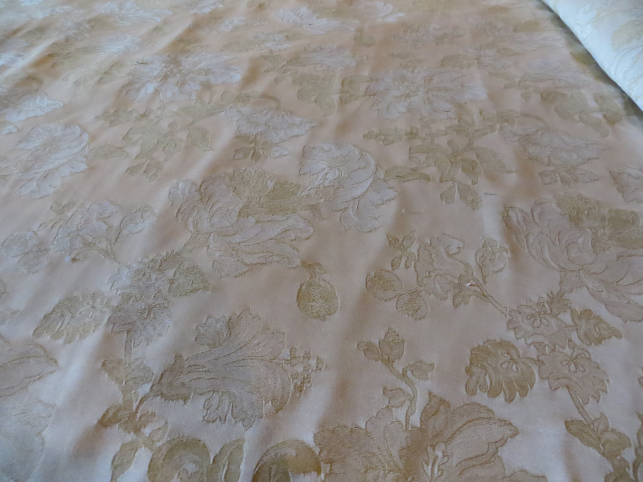 Copriletto in seta damascata color crema con fogliami e fiori a rilievo