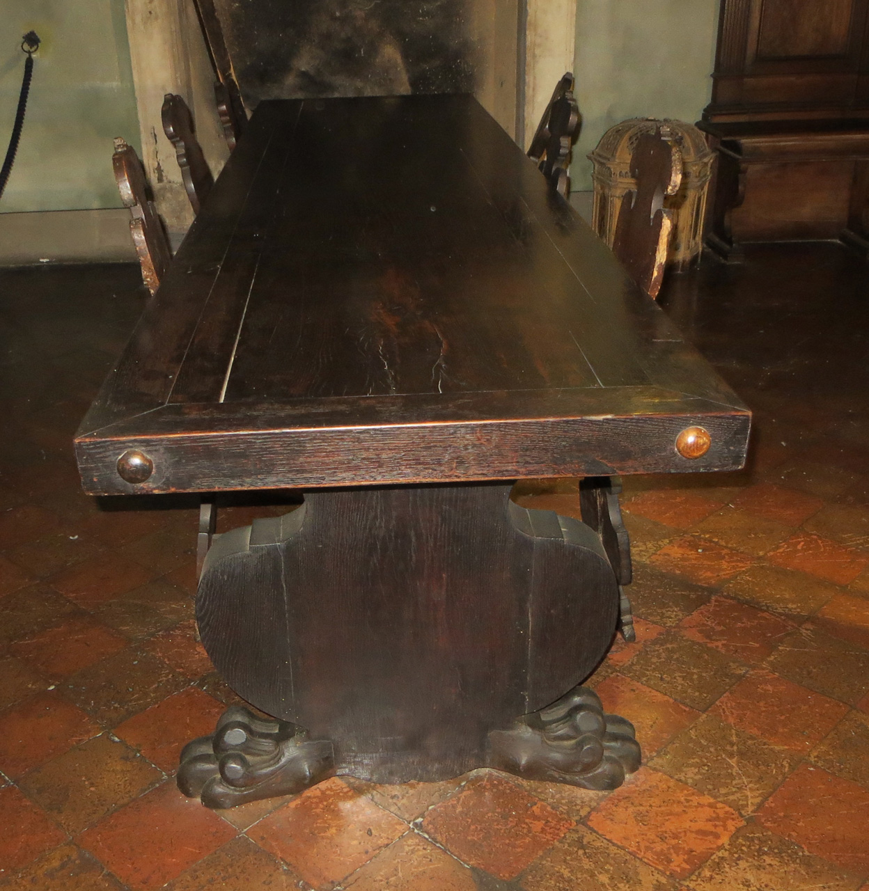 - NOTIZIE STORICO CRITICHE Il massiccio tavolo in legno, in stile neobarocco, posto al centro della Sala del Consiglio si data al primo quarto del secolo XX ed è attribuibile a manifattura settentrionale, probabilmente lombarda o emiliana. Il manuifatto fu probabilmente acquistato, come la maggior parte della mobilia presente nella Rocca, negli anni 1921-1923 in occasione del riallestimento degli ambienti voluto e coordinato dall'ing. Umberto Zanvettori