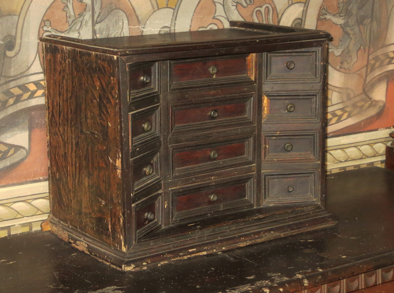 - NOTIZIE STORICO CRITICHE Il manufatto ligneo, utilizzato probabilmente come portacarte o portagioie, fu acquisito dall’ing. Umberto Zanvettori negli anni 1921-1923 nell'ambito della ristrutturazione e riallestimento delle sale della Rocca di Gradara, con l’intento di ricostruire ambienti e atmosfere tipiche delle dimore signorili medievali e rinascimentali. La Camera di Francesca, che assunse questa denominazione proprio in quegli anni, risulta l'emblema del lavoro dello Zanvettori, che la scelse come ambientazione per la nota vicenda di Paolo e Francesca