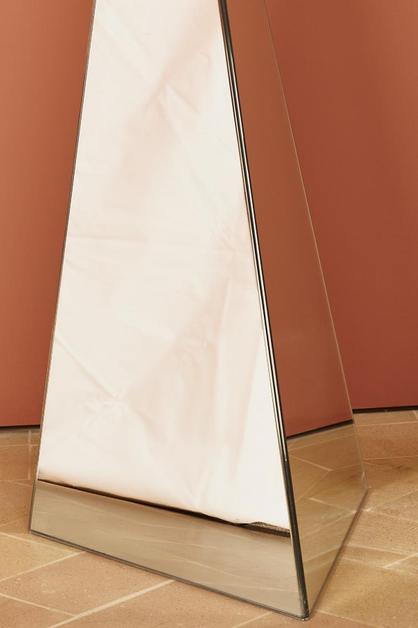 L'opera è composta da due specchi a forma di triangolo scaleno, che creano una piramide, sorretta da un lato da un supporto nero. Gli specchi riflettono lo spazio circostante ribaltandolo e generando illusioni spaziali e geometriche