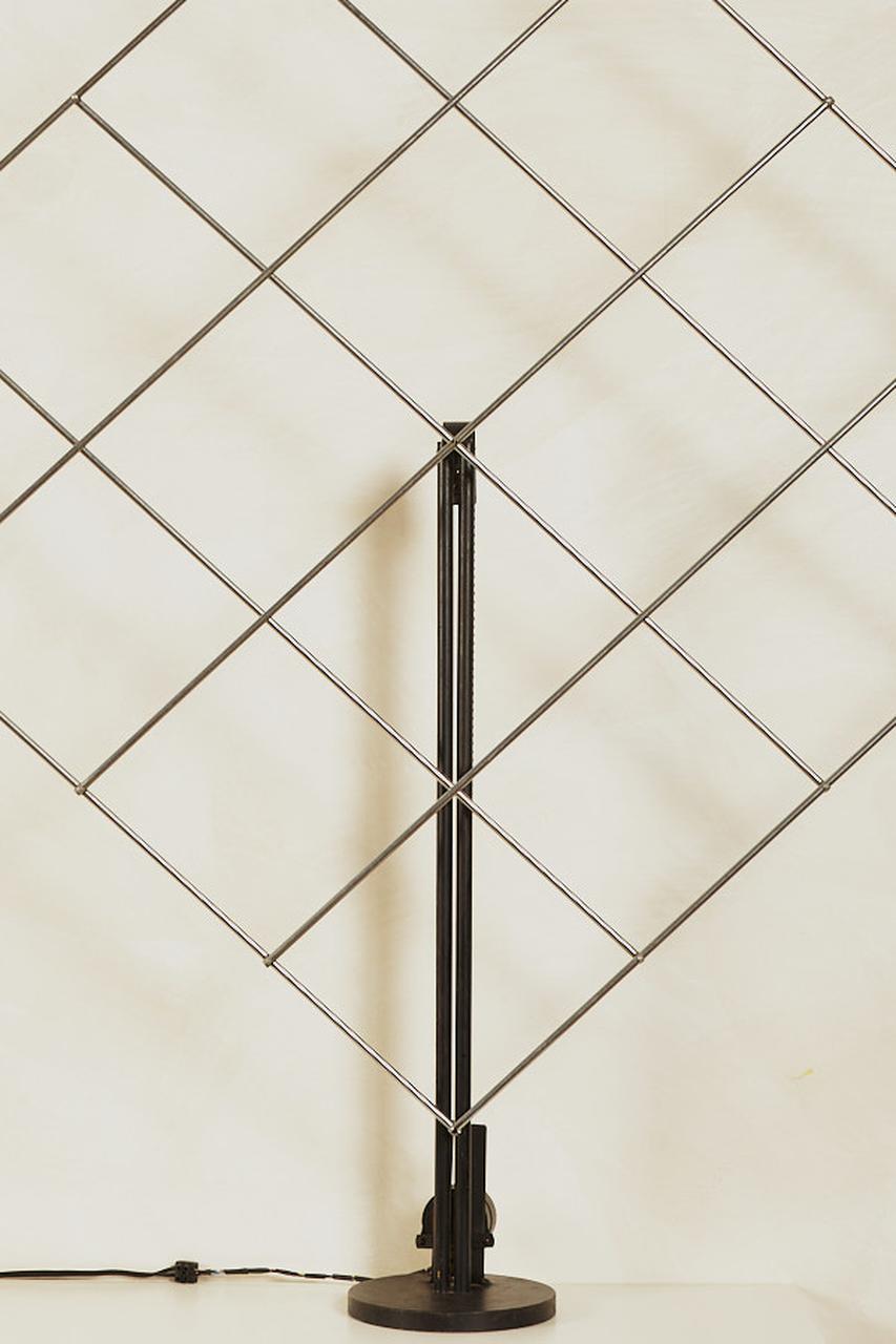 L’opera è costituita da un insieme di materiali industriali, non finalizzati ad uso artistico, assemblati al fine di creareun’opera cinetica azionata da un motore elettrico applicato alla base. Due aste in ferro sorreggono due griglie in acciaio che transitano verticalmente da una forma quadrata a una romboidale. Il movimento è generato da un meccanismo a catena e che permette ai due elementi di alternarsi nell'azione, creando l'effetto della trasformazione della forma geometrica