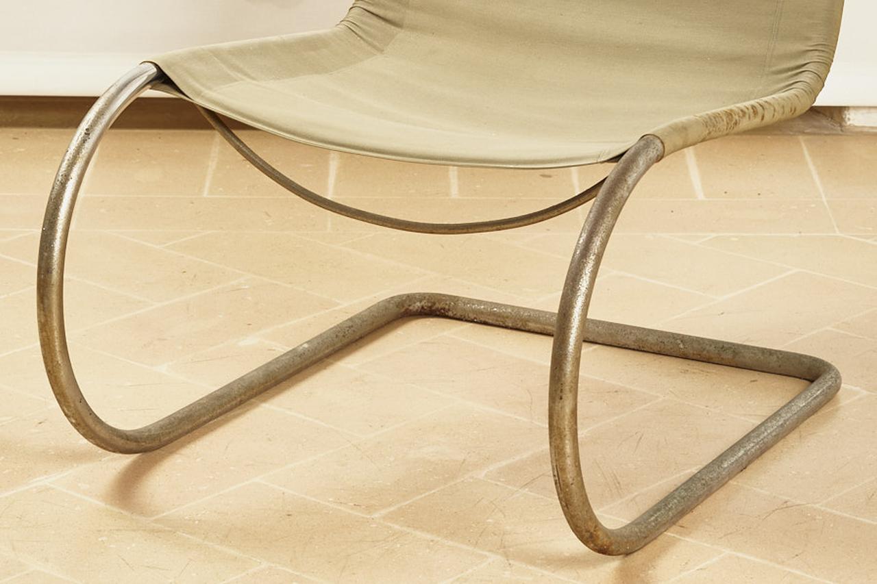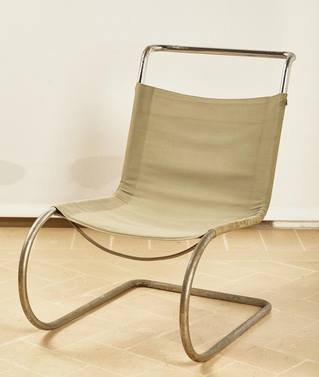 - NOTIZIE STORICO CRITICHE Le due sedie si conservavano nella casa del cognato di Ivo Pannaggi, Guido Benigni, in via Crescimbeni a Macerata, negli ambienti rimodernati dallo stesso Pannaggi intorno al 1931-1932, oggi distrutti. Si conservano solo due fotografie del corridoio e del salotto pubblicate sulla rivista norvegese "Hus og Have" nel giugno 1935, dove è possibile individuare le due sedie MR30 progettate da Mies van der Rohe, e una terza con braccioli modello MR40. Entrambi i modelli erano prodotti a Berlino nell'officina di Joseph Muller e pubblicati in un catalogo della ditta, la Bamberg Metallwerkstätten, datato 11 ottobre 1931. Sono gli anni in cui Pannaggi risiede a Berlino, iscrivendosi nel 1932 alla scuola del Bauhaus, il cui direttore era dal 1930 al 1933 l'architetto Mies van der Rohe che influenzerà con il suo razionalismo l'opera architettonica dell'artista maceratese