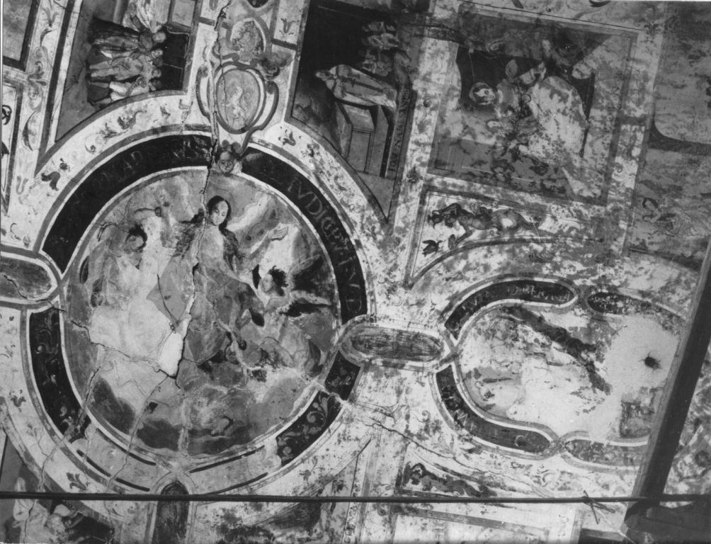 - NOTIZIE STORICO CRITICHE Lo stile degli affreschi presenta caratteri affini al manierismo romano e alla scuola degli Zuccari. L'iscrizione dataria sulla finestra fornisce l'ante quem. Nelle cornici e fra le grottesche sono inseriti i nomi dei confratelli della congregazione, che hanno commissionato i dipinti